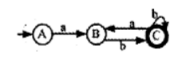 ●某確定的有限自動機(DFA)的狀態轉換圖如下圖所示(A是初態,C是終態),則該DFA能識別(49)。