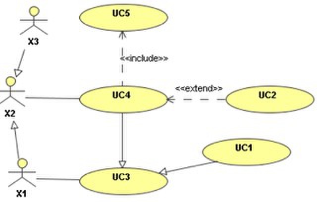 ● 在下面的用例圖(UseCase Diagram)中,X1、X2和X3表示 (39) ,已知UC3是抽象用例,那么X1可通過 (40) 用例與系統(tǒng)進(jìn)行交互。并且,用例 (41) 是UC4的可選部分,用例 (42) 是UC4的必須部分。