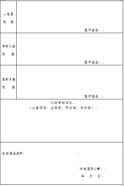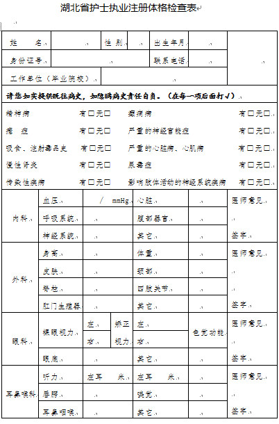 2017年湖北省護士執業注冊體檢表樣本格式如下: