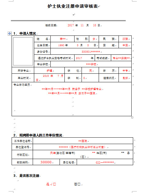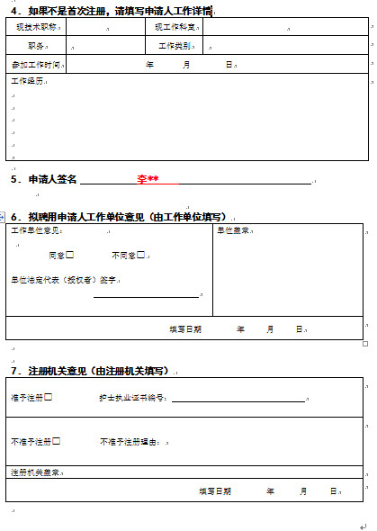 1.本表供申請首次護士執業注冊或者重新申請護士執業注冊使用。