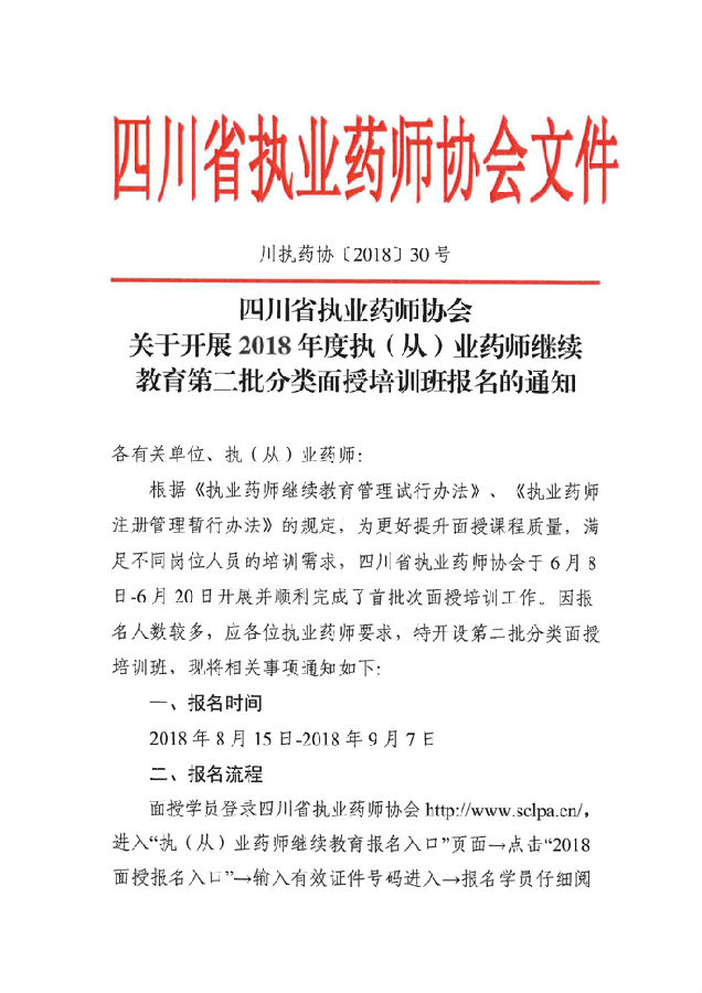 關于開展2018年度執(從)業藥師繼續教育第二批分類面授培訓班報名的通知